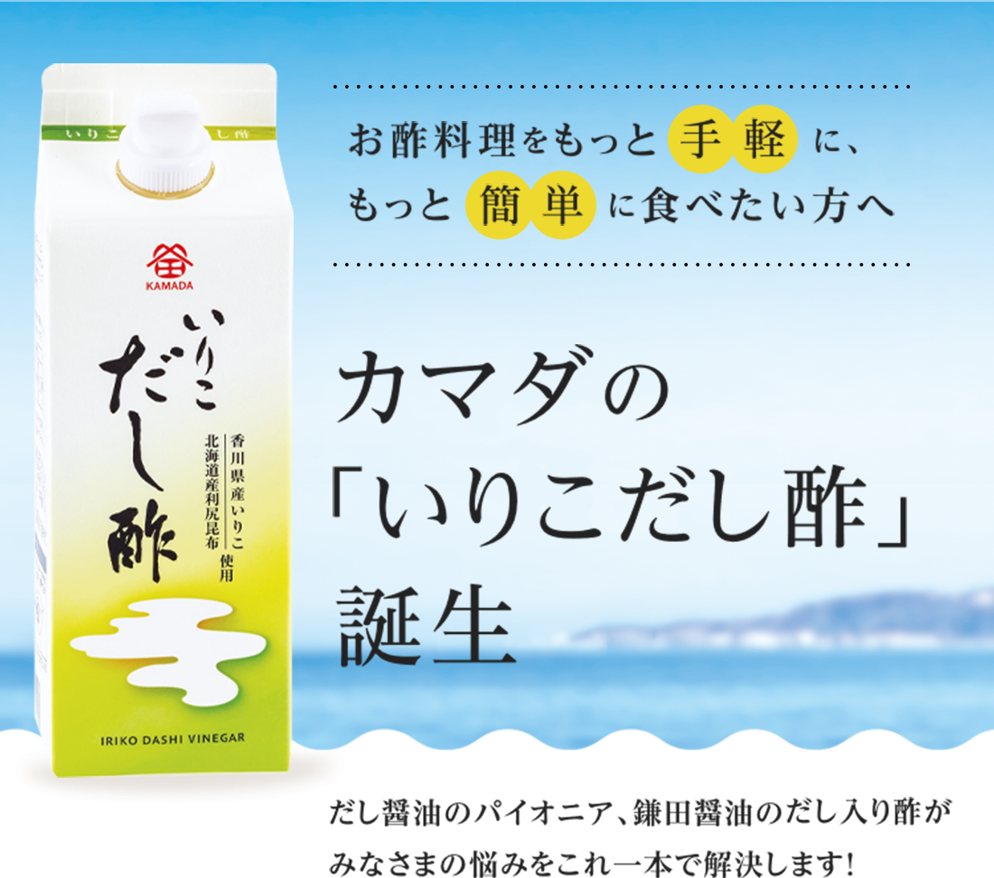 香川県伊吹島産いりこ(煮干いわし)と北海道産利尻昆布の旨みを、さわやかなりんご酢とまろやかな米酢にバランス良く合わせた調味酢です。