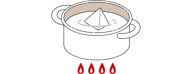 ❶鍋にパッケージに記載された分量の水とだしパック1ヶを入れ、中火にかける。